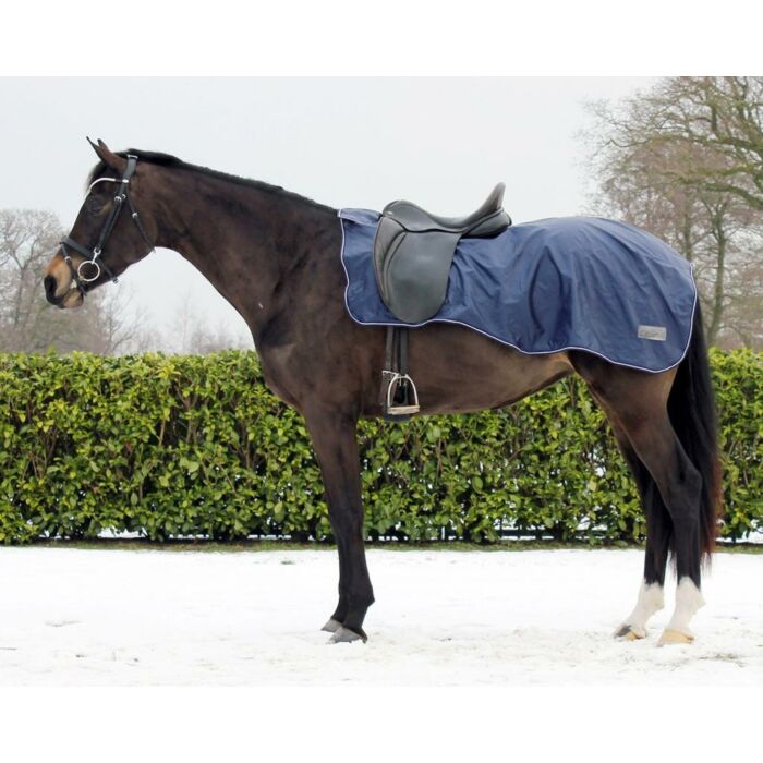 Deze uitrijdeken van QHP is te gebruiken tijdens het loswerken en uitstappen om te voorkomen dat het paard te snel afkoelt. De deken is waterafstotend en wordt door middel van een klittenbandsluiting op de schoft bevestigd.