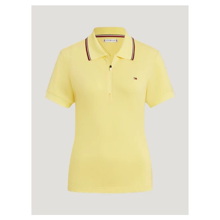 Das Trainingsshirt Tommy Hilfiger Camden in der Farbe Citron Ella in Größe L ist ein sportliches Damen Poloshirt mit technischer Stretch Qualität und anschmiegsamer Passform, erhältlich bei Equidrôme in Venlo und online.