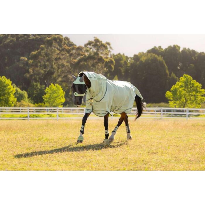 Die Fliegendecke LeMieux Arika Armour Tek Macaron in Größe 140 190 cm ist eine superleichte und atmungsaktive Fliegendecke mit 85 Prozent UV Schutz, innovativem Micromesh und maximaler Bewegungsfreiheit, erhältlich bei Equidrôme in Venlo und online.