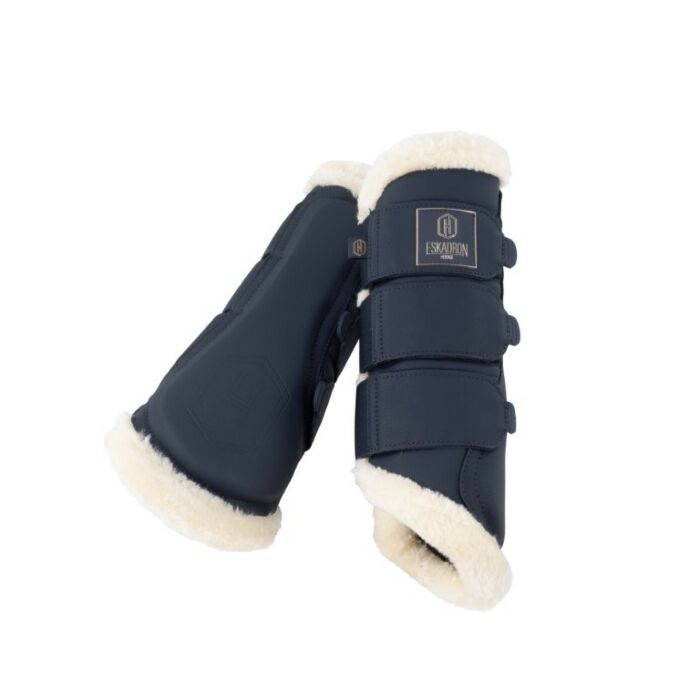 Die Eskadron Heritage Faux Leather FF Gamaschen in Navy bieten Schutz, Stil und hohen Tragekomfort. Kunstleder außen, atmungsaktives Mesh innen und Faux Fur Rand sorgen für ein angenehmes Gefühl und sicheren Halt. Erhältlich bei Reitsport Equidrôme Venlo und online.