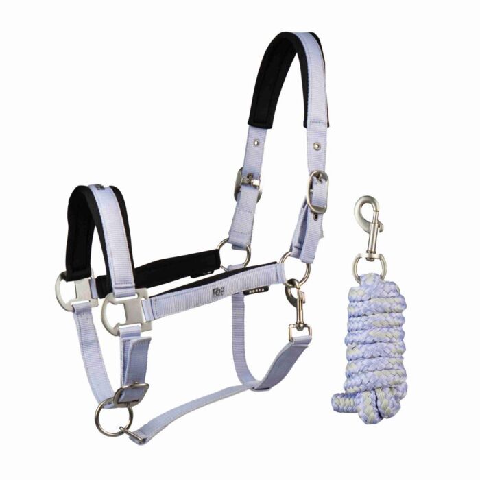 Bequemes EQPRO Halfter Set von Horka in Größe Cob in der sanften Farbe Lilac Coral inklusive Führstrick.
