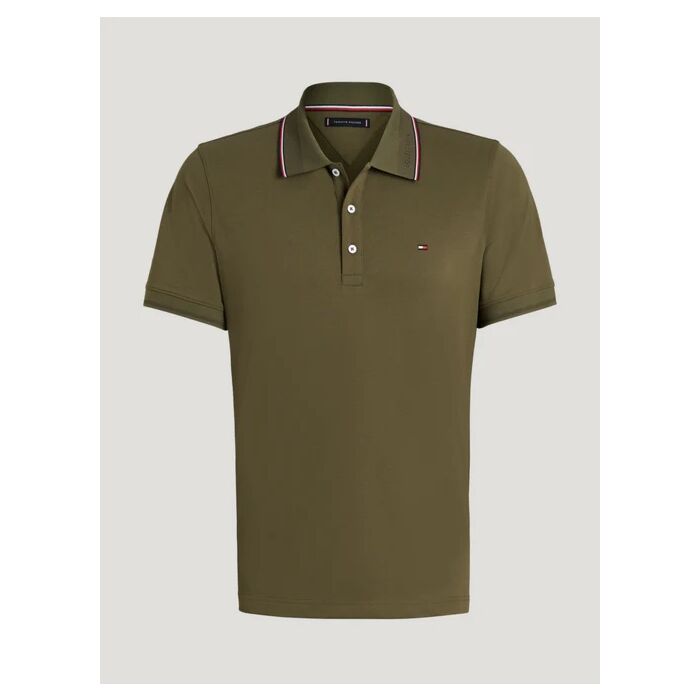 Das Polo Tommy Hilfiger Harrison in der Farbe Utility Olive in Größe M ist ein sportliches Piqué Poloshirt mit Stretch und klassischer Knopfleiste in normaler Passform, erhältlich bei Equidrôme in Venlo sowie online.