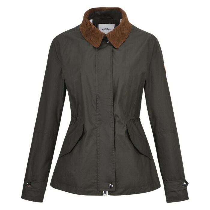 Die HV Polo Morgane Jacke in der Farbe Pine ist eine elegante und funktionale Damenjacke, die perfekt zum aktiven Reiteralltag passt. Die leicht taillierte Passform schmiegt sich schön an den Körper an und sorgt für eine feminine Silhouette, während ausreichend Bewegungsfreiheit erhalten bleibt. Das robuste und zugleich angenehm zu tragende Außenmaterial schützt vor Wind und leichtem Regen und macht die Jacke ideal für wechselhafte Wetterbedingungen. Der kontrastierende Cordkragen verleiht der Jacke eine klassische und hochwertige Optik, während die Taille dezent verstellbar ist und eine optimale Passform ermöglicht. Praktische Taschen bieten Platz für wichtige Kleinigkeiten im Stall oder unterwegs. Diese Jacke vereint Funktionalität und Stil und ist bei Equidrôme in Venlo sowie online erhältlich.