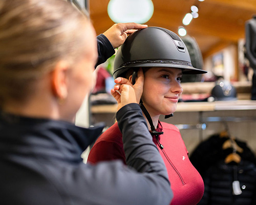 Sicherheit geht vor. Deshalb ist es uns besonders wichtig, dass unsere Kundinnen und Kunden ei-nen gut sitzenden und sicheren Helm tragen. Doch glücklicherweise gibt es viele wunderschöne Reithelme, damit auch die Optik nicht zu kommt.