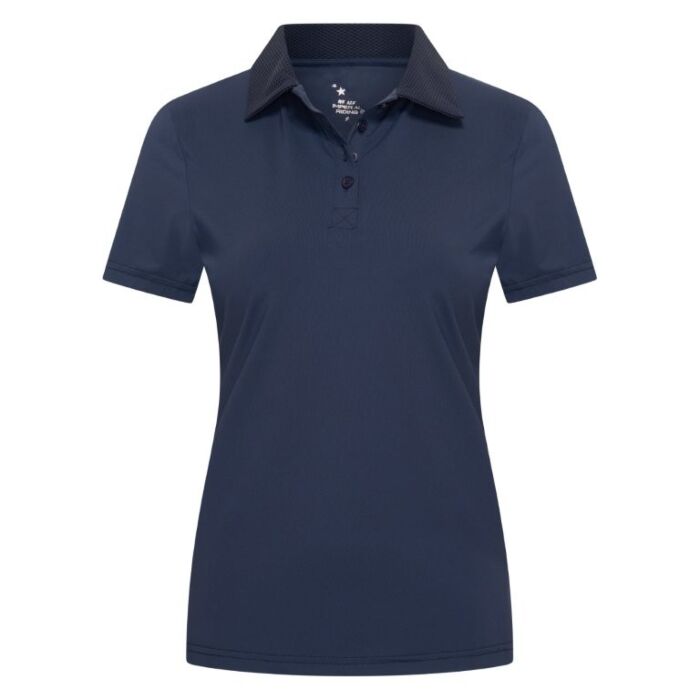 Das Polo Imperial Riding Marly in der Farbe Navy in Größe L bietet hohen Tragekomfort und eine sportlich elegante Ausstrahlung. Das atmungsaktive Material sorgt auch an warmen Tagen für ein angenehmes Tragegefühl. Die Größe L sitzt bequem und bietet ausreichend Bewegungsfreiheit im Schulter und Rückenbereich. Der klassische Polokragen mit Knopfverschluss unterstreicht den zeitlosen Stil, ergänzt durch ein Meshdetail für bessere Belüftung. Das Strass Imperial Riding Logo auf dem Rücken rundet das Design hochwertig ab. Erhältlich bei Reitsport Equidrôme in Venlo und online.