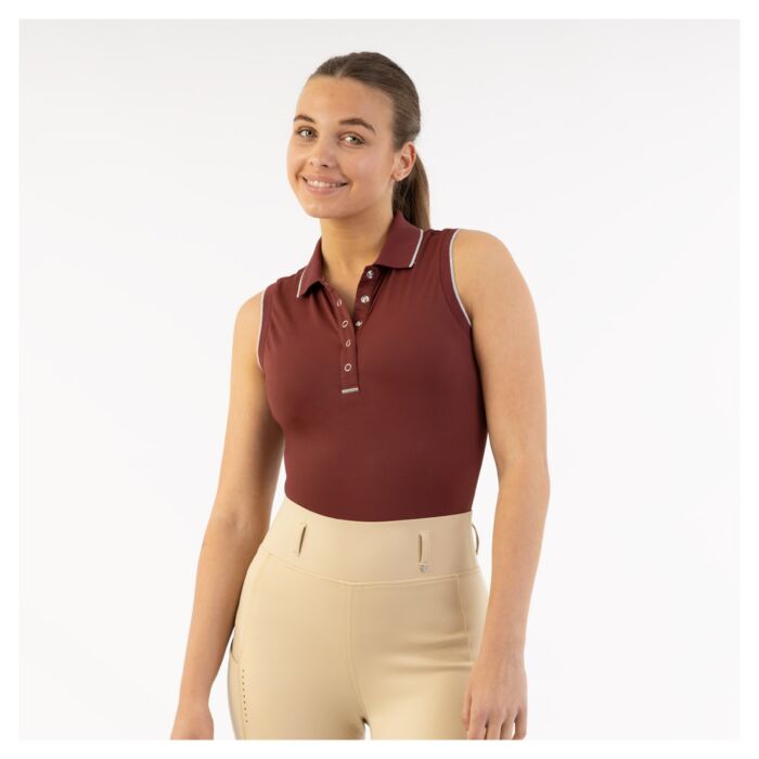 Das ärmellose Polo BR Kiki New Maroon in Größe L kombiniert sportlichen Stil mit funktionellem Komfort. Das atmungsaktive Stretchmaterial passt sich optimal an und sorgt für angenehme Bewegungsfreiheit im Sattel. Ideal für Reiterinnen, die ein leichtes und elegantes Damen Poloshirt suchen. Online erhältlich.