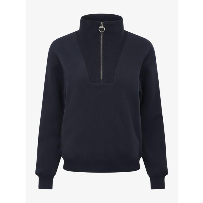 Der Pullover LeMieux Keira Navy in Größe 34 ist ein komfortabler und stilvoller Reitpullover mit Viertelreißverschluss aus weichem Carbon Brushback Fleece der Wärme, Bewegungsfreiheit und eine sportlich elegante Optik bietet, erhältlich bei Equidrôme in Venlo und online.