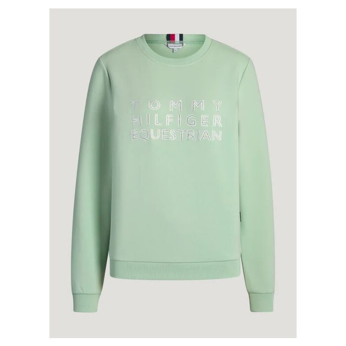 Der Pullover Tommy Hilfiger Belair Belair Mint in Größe L ist ein feminines Stretch Sweatshirt mit Strass Grafik, erhältlich bei Equidrôme in Venlo und online.