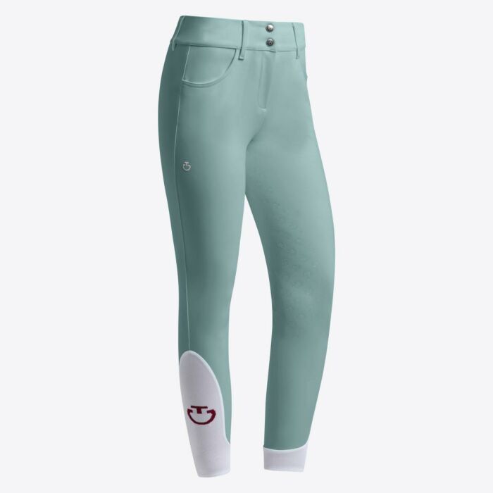 Das weiche, dehnbare Material passt sich perfekt dem Körper an und sorgt für eine gute Passform ohne zu drücken. Dank der atmungsaktiven Eigenschaften bleiben Sie auch an heißen Tagen kühl und trocken. Die Hose hat elastische Hosenbeine mit einem kontrastierenden weißen Finish und dem ikonischen Cavalleria Toscana-Logo, das nicht nur für einen sportlichen Look, sondern auch für eine perfekte Passform in Reitstiefeln sorgt. Mit klassischem Design und dezenten Details wie den Cavalleria Toscana-Logos an Oberschenkel und Knöchel vereinen diese Reithosen mühelos Stil und Funktionalität. Egal, ob Sie trainieren oder an Wettkämpfen teilnehmen, die Cavalleria Toscana America Full Grip Reithose in Mint bietet die perfekte Balance zwischen Leistung und Eleganz.