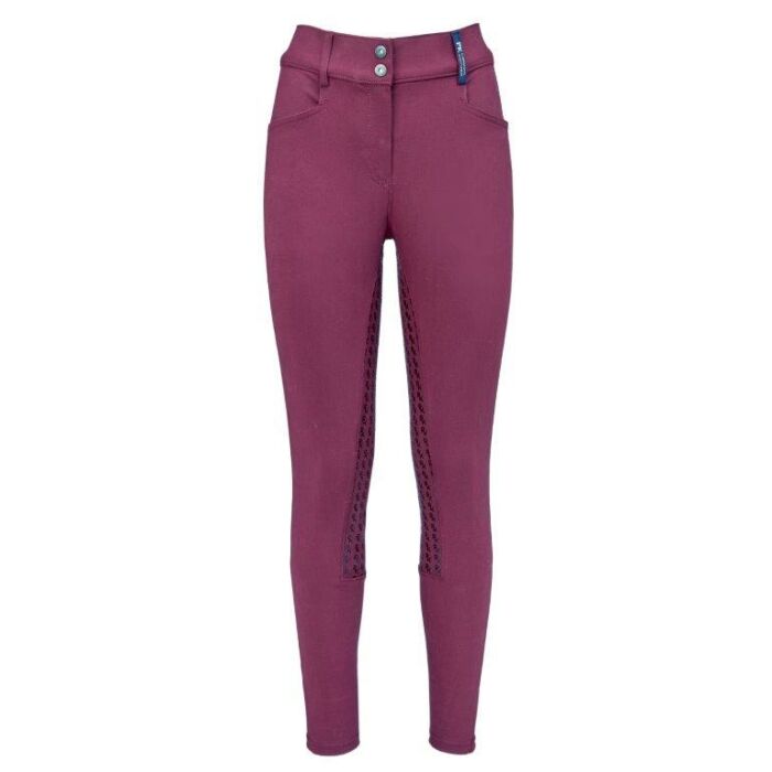 Die PK International Telstar Reithose in Port besteht aus 4-Wege-Stretch, mit Silikon-Vollbesatz und sportiven Details wie PK Logo aus Strass und PK Sports-Abzeichen.