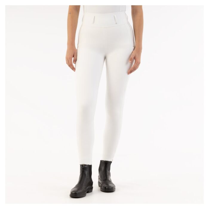 Weiße Damen Reitleggings Größe 34 mit hohem Bund, Full Grip Silikonbesatz und Handytasche, ideal als Turnierreithose, erhältlich bei Equidrôme in Venlo und online.