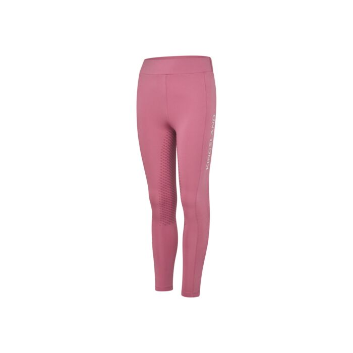 Die Kingsland Junior Reitleggings Lilo F Tec 5 Fullgrip in Heather Rose in Größe 140 bietet Komfort, Atmungsaktivität und sicheren Halt für junge Reiterinnen.