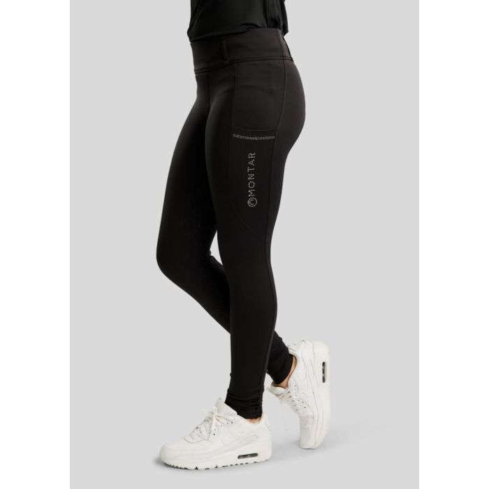 Die Montar MoEverlisa Junior Reitleggings Fullgrip in der Farbe Black in Größe 164 überzeugt durch ihre elegante Optik und hohen Tragekomfort. Die Kristalldetails am Handyfach und das Montar Logo verleihen der Reitleggings einen luxuriösen Look. Die elastische Passform sorgt für maximale Bewegungsfreiheit, während der Fullgrip Silikonbesatz sicheren Halt im Sattel bietet. Das atmungsaktive Material sorgt für ein angenehmes Tragegefühl, auch bei längeren Trainingseinheiten. Diese Reitleggings ist bei Equidrôme in Venlo sowie online erhältlich.