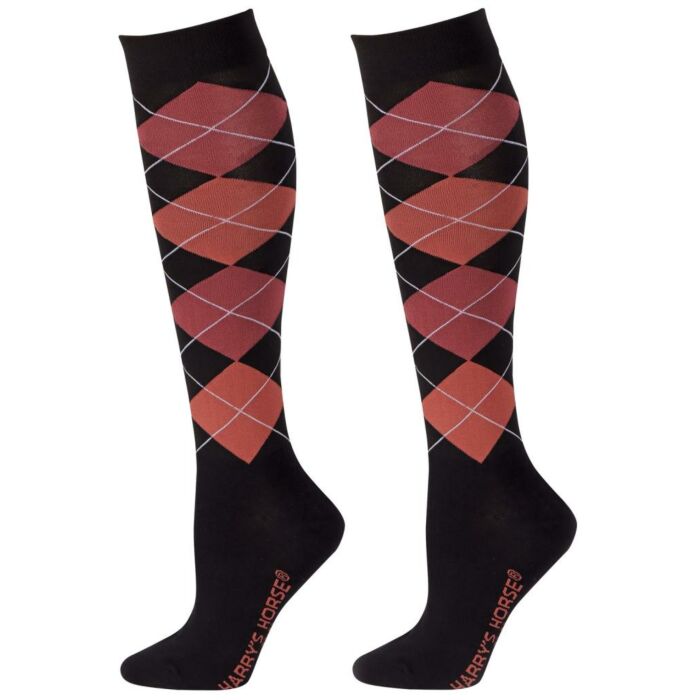 Die Socken Harry's Horse Puk Jet Black sind bequeme, dünne Kniestrümpfe mit einem klassischen Argyle-Rautenmuster, das für einen zeitlosen und eleganten Look sorgt. Durch das dünne Material passen diese Socken perfekt in Reitstiefel oder Jodhpur-Stiefel und bieten dennoch ausreichend Halt und Komfort beim Reiten und bei der Stallarbeit. Ideal für den täglichen Gebrauch und leicht mit deinem Reitoutfit zu kombinieren. Erhältlich bei Reitsport Equidrôme in Venlo.