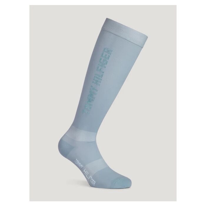 Die Reitsocken Tommy Hilfiger Fontana Sweet Blue in Größe 35 38 sind Kompressionssocken mit verstärkten Knöchel und Fußbereichen sowie Strass Logo, erhältlich bei Equidrôme in Venlo und online.