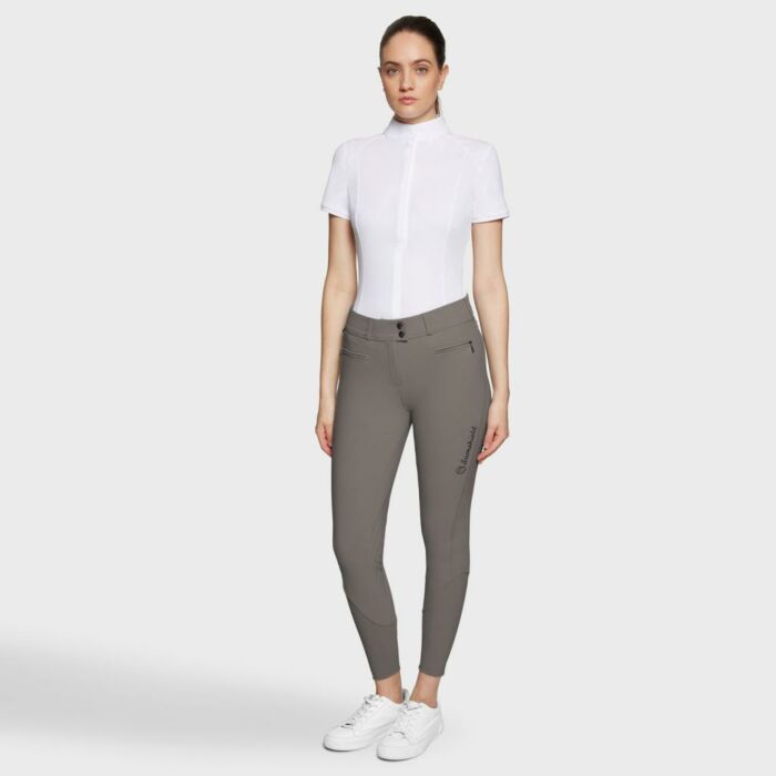 Das atmungsaktive Stretchmaterial bietet optimalen Tragekomfort und schmiegt sich perfekt an den Körper an, während der Kniegriff für zusätzliche Stabilität und Kontrolle im Sattel sorgt. Dank der Handytasche mit Reißverschluss haben Sie Ihre wichtigsten Utensilien immer griffbereit. Darüber hinaus ist die Reithose knitterfrei und pillingfrei ausgerüstet, so dass sie auch nach häufigem Waschen lange schön bleibt. Mit dem UPF 50+ Schutz sind Sie auch bei sonnigen Fahrten bestens vor schädlichen UV-Strahlen geschützt. Diese maschinenwaschbaren Reithosen sind ein Muss für jeden Reiter, der Wert auf Luxus, Komfort und Leistung legt. Bestellen Sie jetzt die Samshield Clara Metal Dots Knie-Grip-Reithose bei Ruitersport Equidrome und erleben Sie die perfekte Balance zwischen Eleganz und Funktionalität!