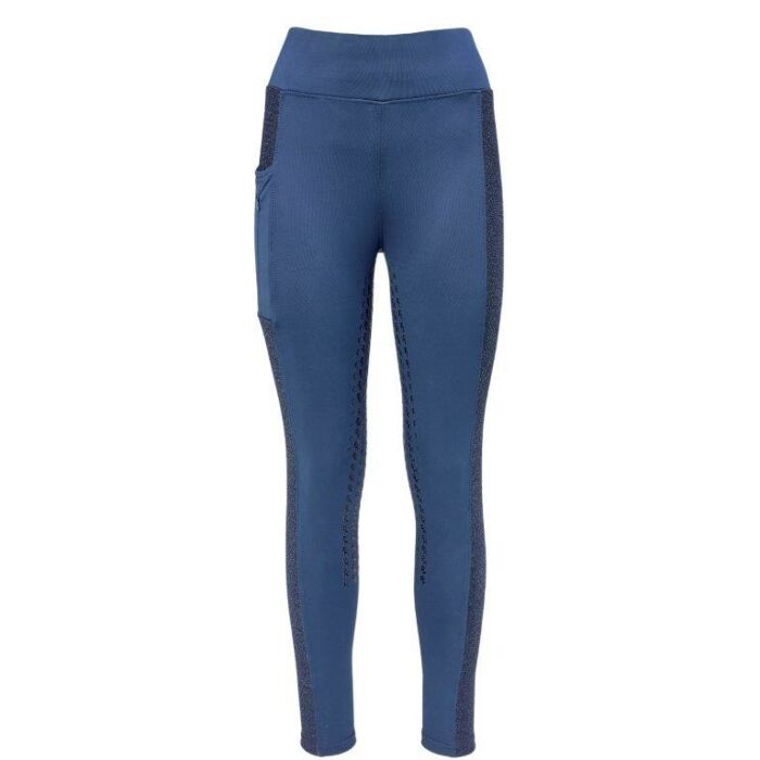 Die PK International Toledo Vollbesatz-Reitleggings in der Farbe Ebony überzeugt durch ihre moderne Kombination aus Stil und technischer Funktionalität. Glänzende Stoffeinsätze an den Seiten verleihen der Hose eine elegante, feminine Note, während die matten Stoffpartien die sportliche Optik unterstreichen und gleichzeitig für eine optimale Passform sorgen. Ein praktisches Detail ist die Tasche mit glänzendem Logo-Print, die dem Design einen sportiven Akzent gibt. Der Silikon-Vollbesatz auf der Innenseite der Beine garantiert besten Halt und Stabilität im Sattel, sodass du dich jederzeit sicher und komfortabel bewegen kannst. Mit der Toledo Reitleggings wählst du ein Kleidungsstück, das Eleganz, Bewegungsfreiheit und Performance ideal verbindet. Diese Reitleggings ist bei Reitsport Equidrôme in Venlo erhältlich.