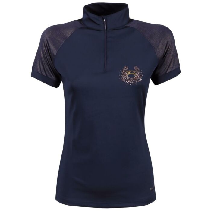 Mit kurzen Ärmeln und einem Stehkragen mit kurzem Reißverschluss ist dieses Hemd praktisch und trendig zugleich. Die Ärmel sind mit einem verspielten goldfarbenen Aufdruck versehen, während das mit Kristallen verzierte Logo der Equestrian Society auf der Brust für einen luxuriösen Look sorgt. Aus einem bequemen und elastischen Stoffmix aus 93 % Polyester und 7 % Elasthan gefertigt, bietet dieses Shirt optimale Bewegungsfreiheit und eine perfekte Passform. Ideal für Training, Wettkämpfe oder als stilvolle Ergänzung zu Ihrem täglichen Outfit. Exklusiv erhältlich bei Ruitersport Equidrome. Bestellen Sie das Classy Hollis-Hemd noch heute online oder besuchen Sie unseren Shop, um dieses vielseitige und elegante Must-have selbst zu entdecken!