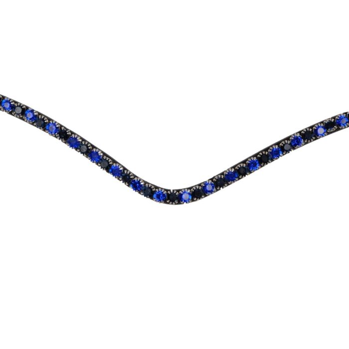 Laat je paard stralen met deze gebogen kristallen frontriem met één rij sprankelende marinekristalstenen. De frontriem is voorzien van drukknopen met een Montar logo. De frontriem is verkrijgbaar in zwart leer.
