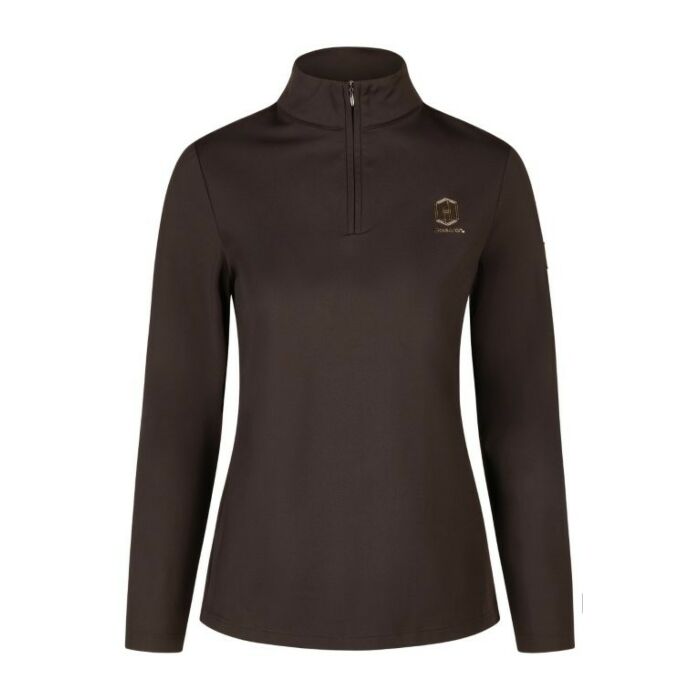 Das Eskadron Heritage Half Zip Trainingsshirt in Black Truffle bietet Wärme, Bewegungsfreiheit und eine elegante Passform. Erhältlich bei Reitsport Equidrôme Venlo und online.
