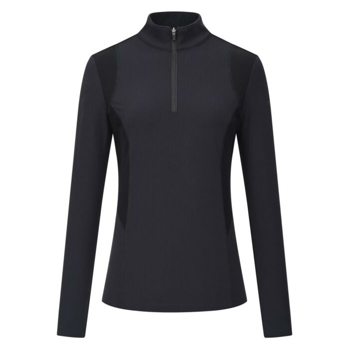 Sportliches und stilvolles Trainingsshirt mit atmungsaktiven Mesh- und Rippdetails – ideal für Komfort und eine elegante Haltung im Sattel.