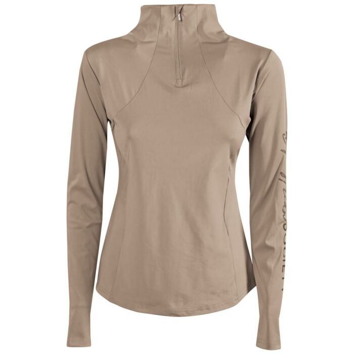 Trainingsshirt Harry's Horse Eden Silver Mink mit langen Ärmeln, Stehkragen und dezentem Equestrian Society Logo.
