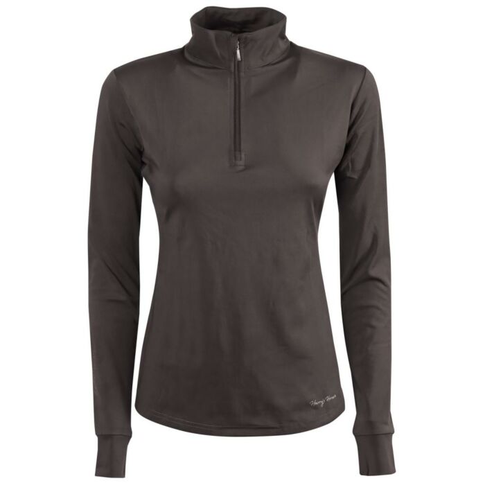 Trainingsshirt Harry's Horse Izzy After Dark mit langen Ärmeln, Stehkragen und Equestrian Society Logo auf Kragen und Ärmel.