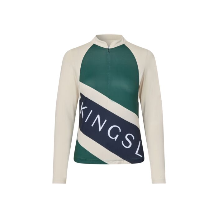 Das Design dieses Shirts ist ein echter Hingucker. Die Kombination aus Grün mit beigen Akzenten und dem diagonalen Kingsland-Logo verleiht ihm einen modernen und sportlichen Look. Die langen Ärmel bieten zusätzlichen Schutz vor Sonne oder Wind, sodass das Shirt zu jeder Jahreszeit getragen werden kann. Der Half-Zip-Reißverschluss vorne ermöglicht eine einfache Temperaturregulierung und sorgt für ein einfaches An- und Ausziehen des Shirts. Dieses Trainingsshirt ist nicht nur praktisch, sondern auch eine stilvolle Ergänzung Ihrer Reitgarderobe. Egal, ob Sie trainieren oder an Wettkämpfen teilnehmen, das Kingsland Natasha Training Shirt bietet die perfekte Balance zwischen Leistung und Eleganz.