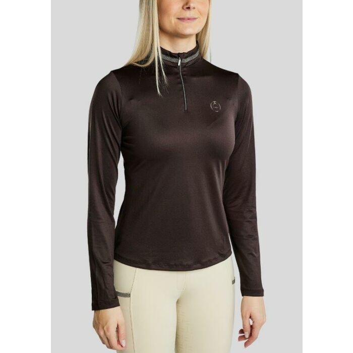 Das Montar MoGaia Trainingsshirt mit langen Ärmeln in Brown vereint luxuriöses Design, höchsten Tragekomfort, edle Details und optimale Funktionalität – perfekt für Reiterinnen, die Stil und Leistung schätzen.