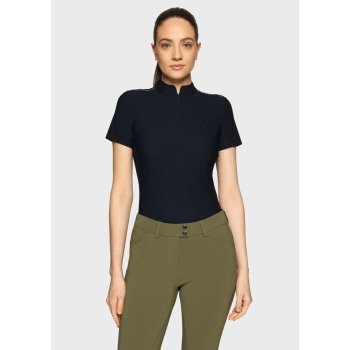 Trainingsshirt Samshield Bruna Premium Navy Größe S ist ein elegantes Damen Reitshirt mit atmungsaktiver Qualität, erhältlich bei Equidrôme in Venlo und online.