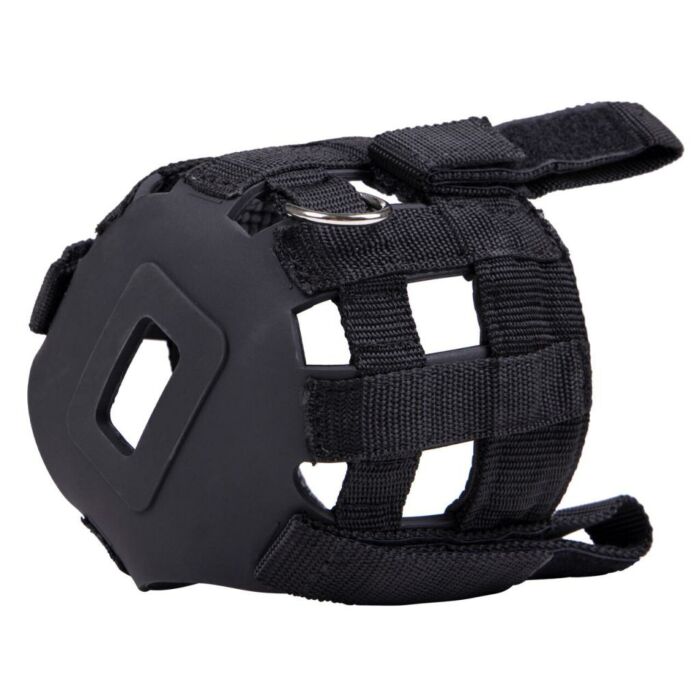 Diese Weidemaske ist leicht am Halfter zu befestigen.