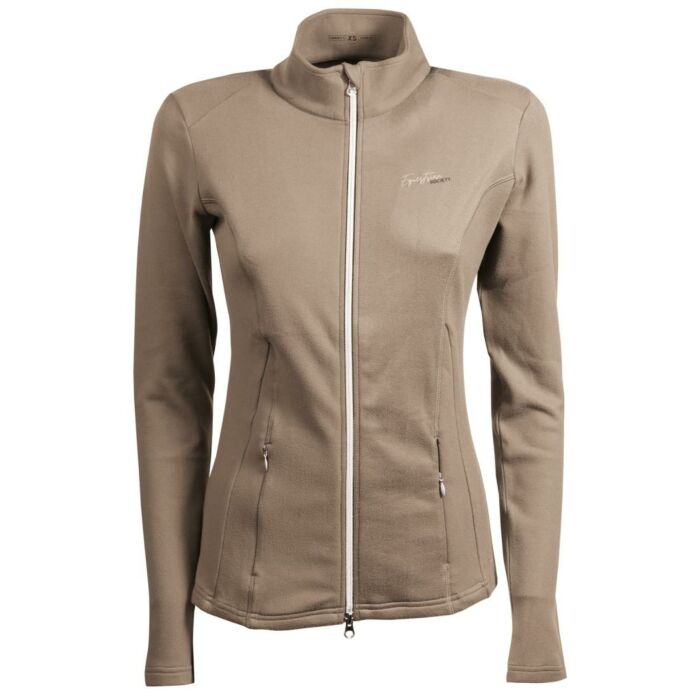 Weste Harry's Horse Kae Chocolate Chip mit Zwei-Wege-Reißverschluss, Reißverschlusstaschen und Equestrian Society Logo auf der Brust.