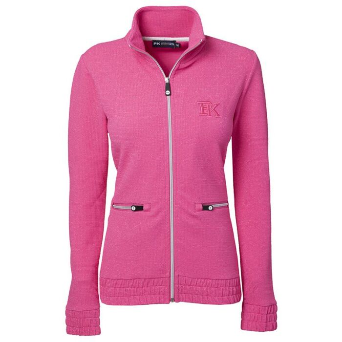 Die dezenten Glitzerdetails im Stoff verleihen der Strickjacke einen eleganten Look, während der hohe Kragen zusätzlichen Schutz vor Kälte bietet. Der durchgehende Reißverschluss vorne erleichtert das schnelle An- und Ausziehen der Weste. Die taillierte Passform betont die feminine Silhouette und sorgt für einen modernen Look. Dank des atmungsaktiven Stoffes bleibt die Weste auch bei intensiven Aktivitäten bequem. Die beiden Reißverschlusstaschen bieten viel Platz, um kleine Utensilien sicher aufzubewahren. Die elastischen Bündchen an Ärmeln und Taille sorgen dafür, dass die Weste gut sitzt und die Wärme speichert. Das PK International-Logo auf der Brust verleiht der Weste einen luxuriösen und wiedererkennbaren Look. Diese vielseitige Weste ist eine perfekte Ergänzung Ihrer Reitgarderobe und lässt sich mühelos mit anderen Artikeln aus der Kollektion kombinieren. Erhältlich bei Ruitersport Equidrome für alle, die eine Mischung aus Stil und Funktionalität suchen.